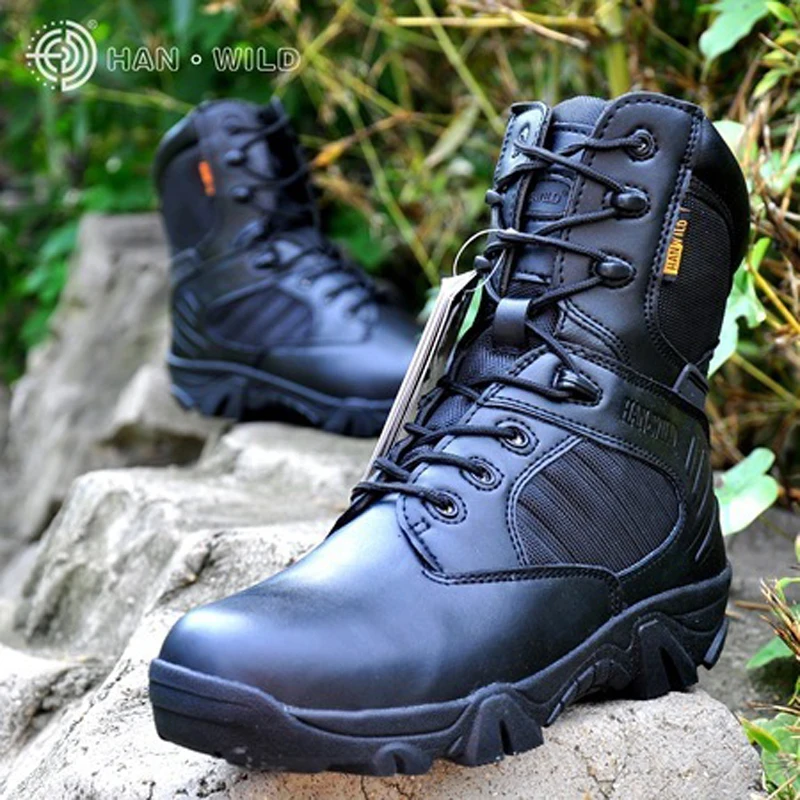 Excellent Sale 2017 New Tactical Army Boots Mens High Top Safety Shoes Ankle Boots For Men Leather Lace Up Front Military Combat Boots safety outdoor shoes Rating: 4.3 out of 5