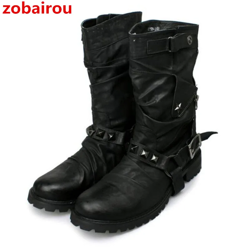 Big Stock Sale Zobairou Fashion Retro Winter Men Cowboy Combat Boots Leather High Top Military Shoes Tactical Vintage Hombre Motorcycle Boots safety outdoor shoes Rating: 2.6 out of 5