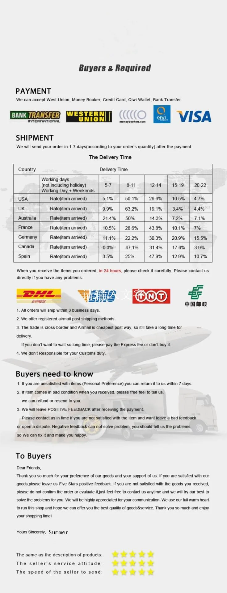 If the product you receive is not as described or low quality, the seller promises that you may return it before order completion (when you click "Confirm Order Received" or exceed confirmation timeframe) and receive a full refund. The return shipping fee will be paid by you. Or, you can choose to keep the product and agree the refund amount directly with the seller.N.B.: If the seller provides the "Longer Protection" service on this product, you may ask for refund up to 15 days after order completion.