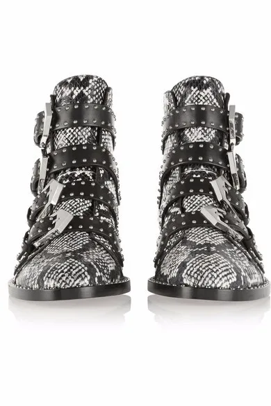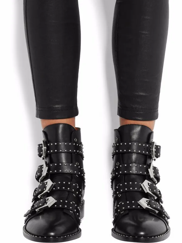 Kaeve 2016 Winter Boots New Female Genuine Leather Tactical Ankle Boot Western Vintage Rivets Studded Motorcycle Punk Shoe Woman