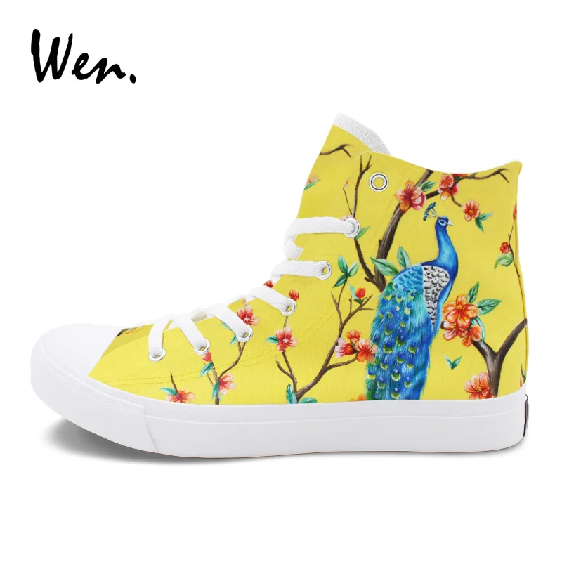 On-time Delivery: If you do not receive your purchase within 60 days, you can ask for a full refund before order completion (when you click "Confirm Order Received" or exceed confirmation timeframe).Wonderful Flash Deal Wen Original Design Chinoiserie Style Blue Peacock Exquisite Plum Blossom Hand Painted Canvas Shoes Sneakers Yellow Painting