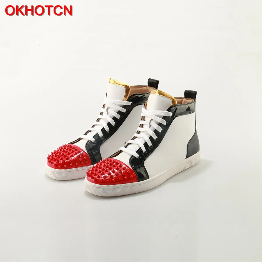 Fantastic Discount OKHOTCN Outdoors Chaussure Homme Fashion Men Shoes Brand Flats Lace Up White Black Red Mix Colors Spike Studs Rivet Casual Shoes