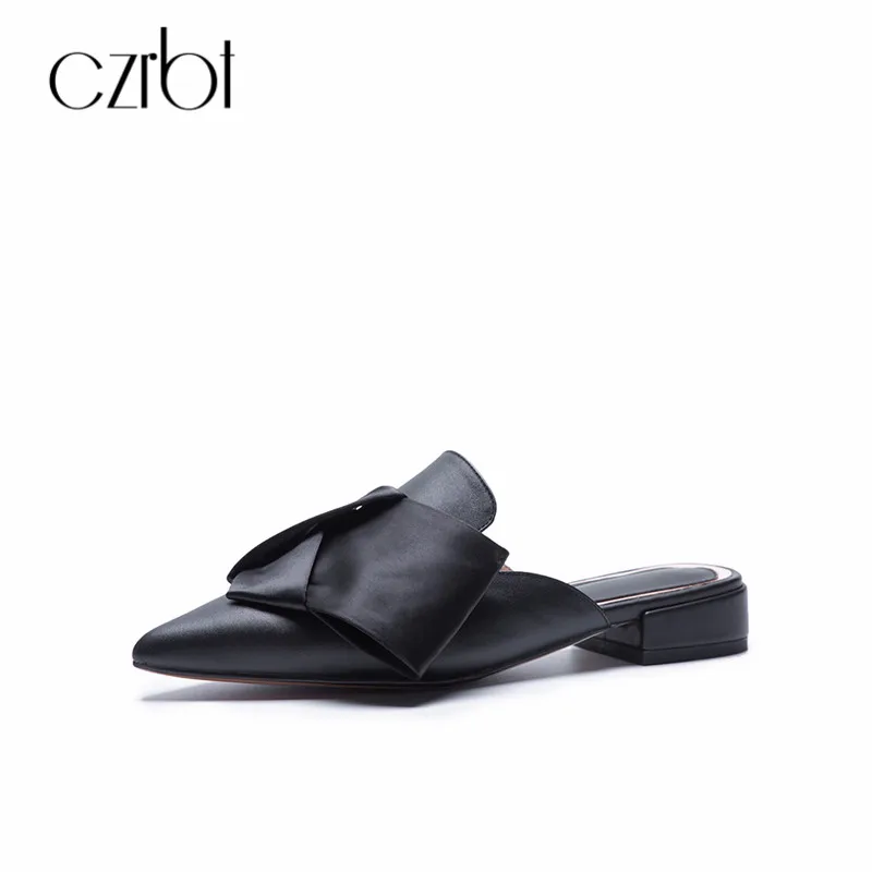CZRBT Slippers 2018 Women Genuine Leather Mule Shoes Slides Women Flat Autumn Plus Size 34-43 Women Shoes Outdoor Zapatos Mujer