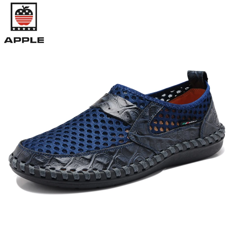 Fantastic Promotion APPLE 2017 Hot Sale Breathable Mesh + Genuine Leather Mens Running Shoes British Slip On Male outdoor Sneakers 2817 safety outdoor shoes Rating: 4.8 out of 5