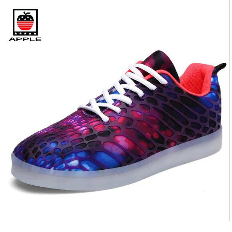 Hurry! Limited Apple 2017 autumn new arrival LED colorful light unisex skateboard shoes camouflage mesh cow muscle outdoor sneakers Q653 safety outdoor shoes Rating: 4.4 out of 5