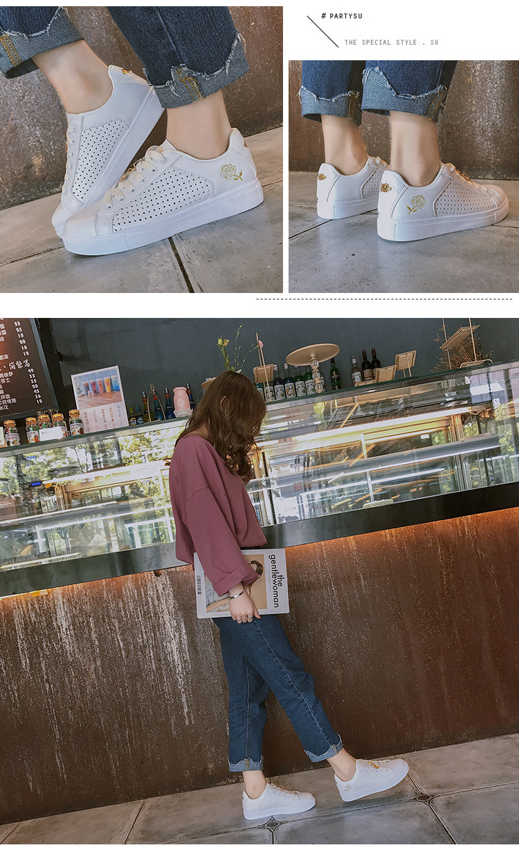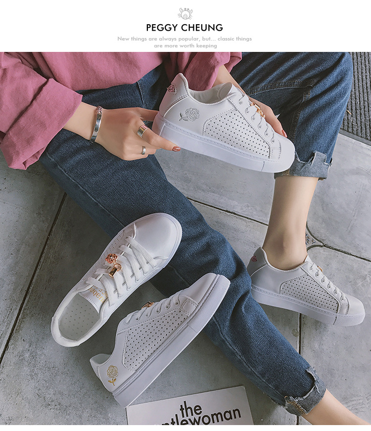 Fast Promo 2018 Women Skateboarding Sports Shoes PU Leather White Sneaker Shoes Breathable Girls White Shoes for Women Outdoor Sneakers safety outdoor shoes Rating: 4.8 out of 5