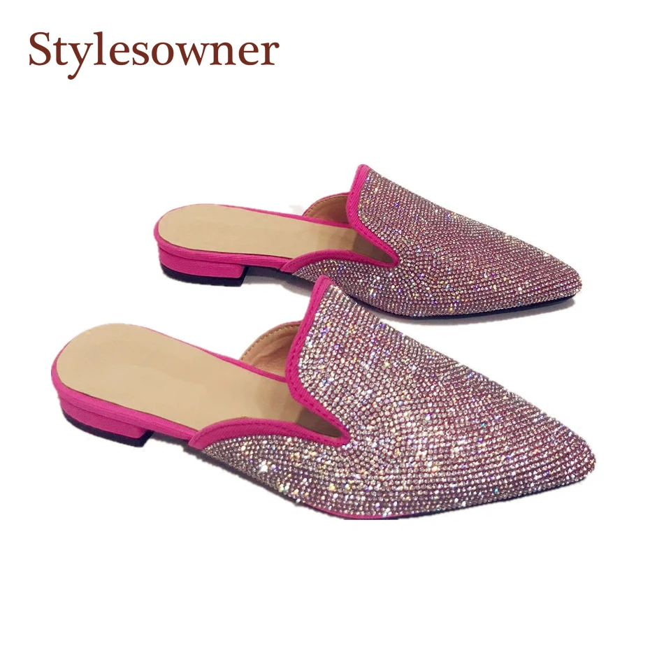 Wonderful Special Stylesowner Pointed Toe Slipper Shoes 2018 Summer Amazing Full Diamond Shiny Slides Flat Outdoor Mules Mujer Top Quality Style safety outdoor shoes Rating: 4.7 out of 5