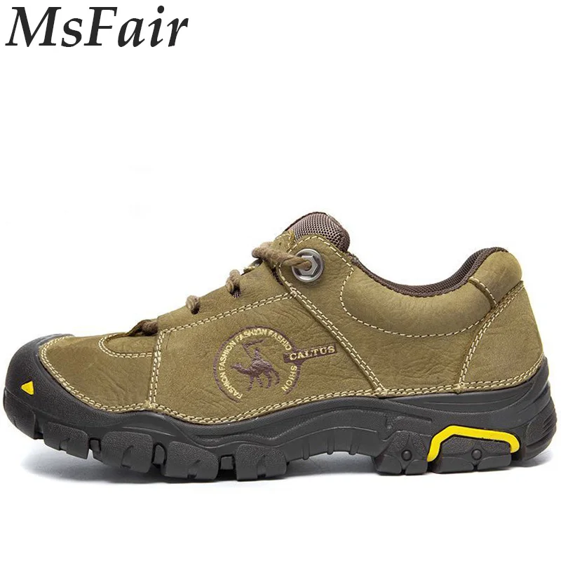 2018 Offers Men Hiking Shoes Tactical Boots Genuine Leather Man Brand Outdoor Athletic Hunting Trekking Large Size Mens Sneakers Climbing safety outdoor shoes Rating: 4.6 out of 5