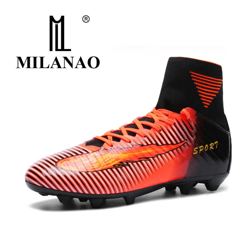 2017 MILANAO Men hard-weaing student Kids Football Boots High Ankle Race outdoor White Training soccer shoes Original Zapatillas